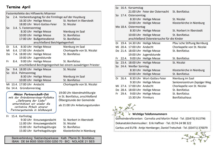 Termine April 2022 - Katholische Gemeinde Bernburg