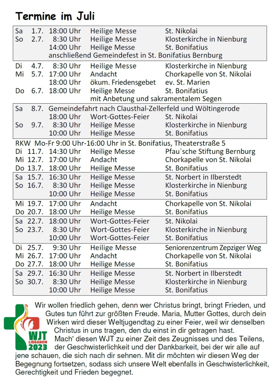Termine Juli 2023 - Katholische Gemeinde Bernburg