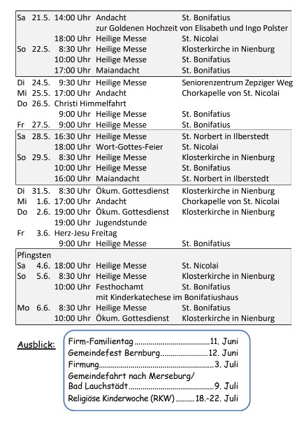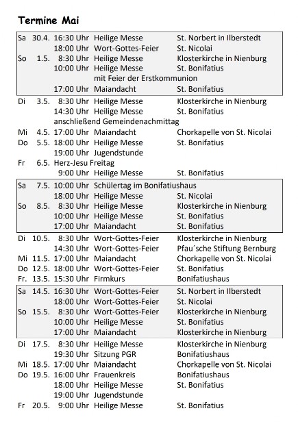 Termine Mai 2022 - Katholische Gemeinde Bernburg