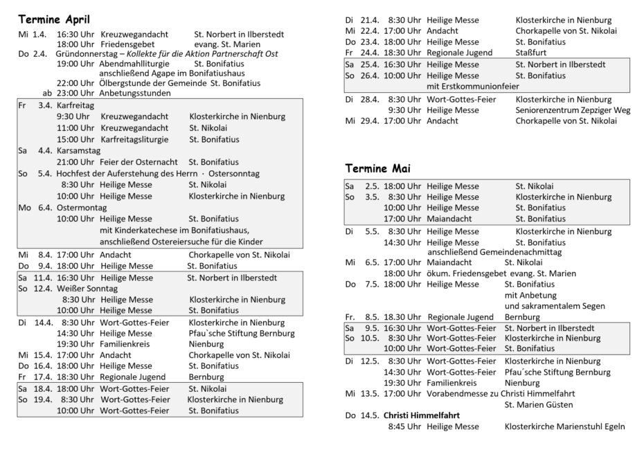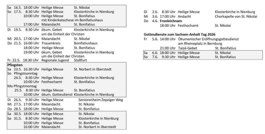 Termine April / Mai 2026 - Katholische Gemeinde Bernburg